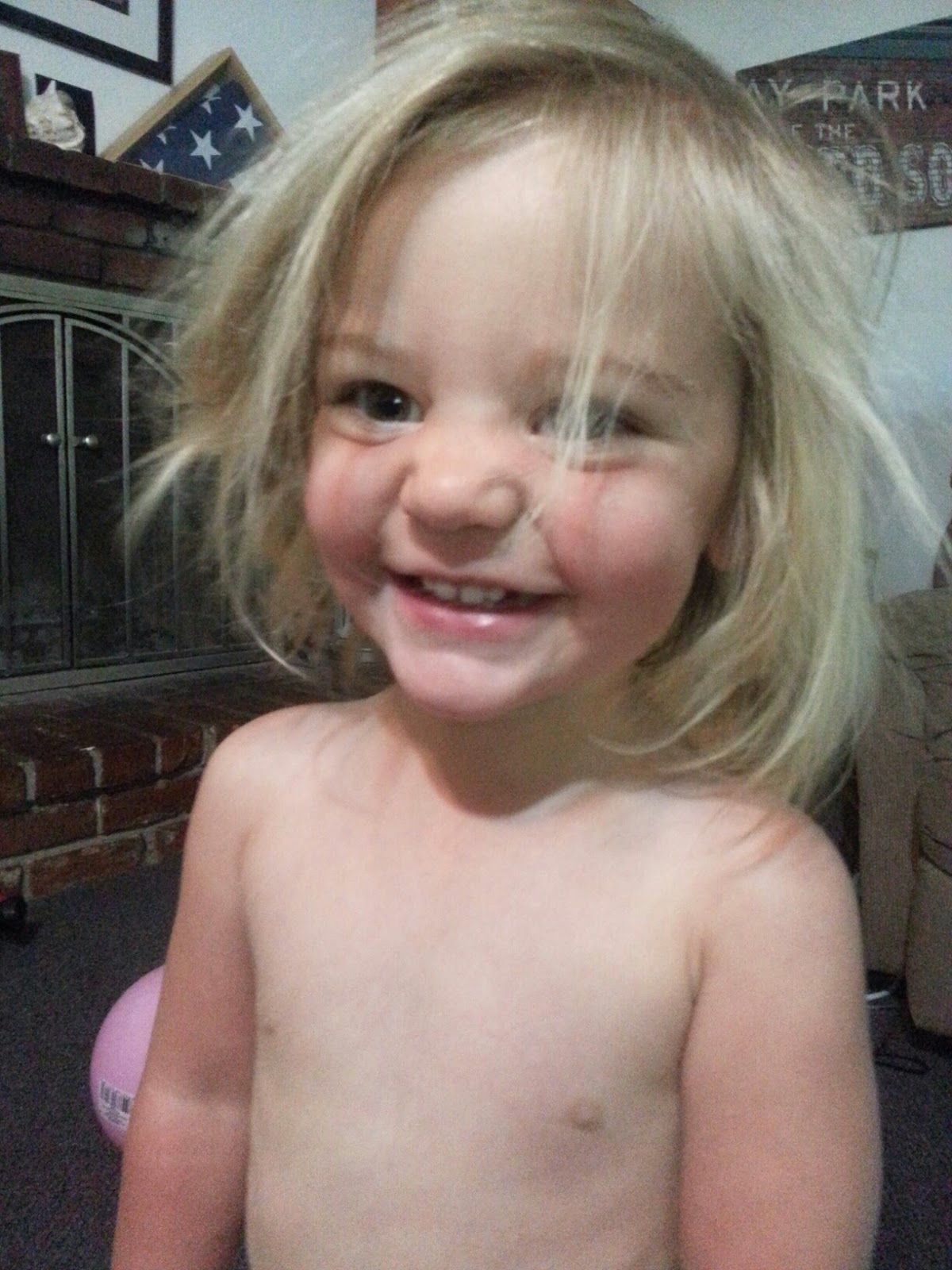 This morning I took these "before and after" pictures. When she wakes up her hair is all wild and she loves it, but gets frusterated quickly by it being in her face. She looks like a completely different kid with her hair back and tidy.